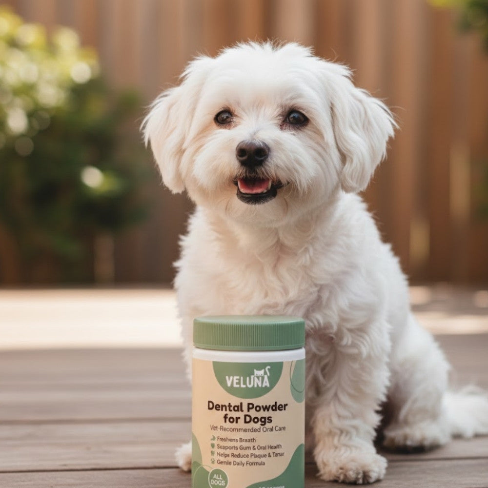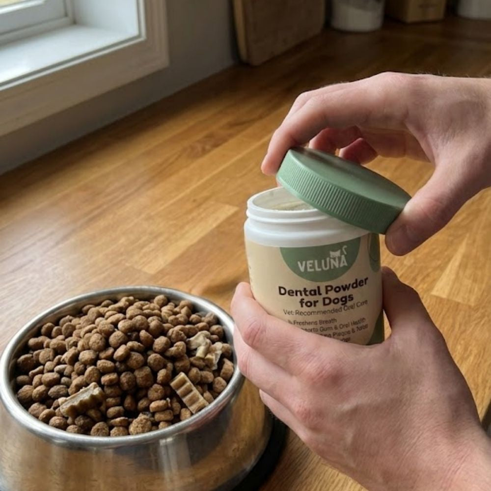 A kutyatulajdonosok nagyra értékelik, milyen egyszerű a Veluna Dental Powder használata, és mennyire zökkenőmentesen illeszkedik az étkezési rutinba. Ezek a közös pillanatok tükrözik azt a gondoskodást és következetességet, amely a hosszú távú jóllét alapja. Valódi otthonok, valódi kutyák, és rutinok, amelyek egyszerű, mindennapi törődésre épülnek.