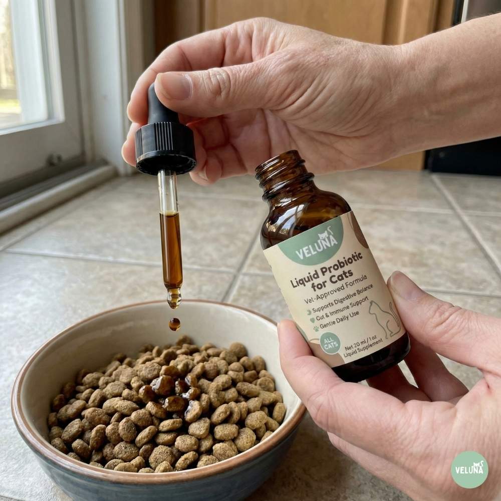 Pontosan ezért fejlesztettük ki a Veluna Folyékony Fejlett Probiotikum Macskáknak. Fejlett adagolási rendszere segít a jótékony baktériumoknak hatékonyan áthaladni a gyomron, és ott támogatni az emésztési egyensúlyt, ahol a macskának a legnagyobb szüksége van rá.