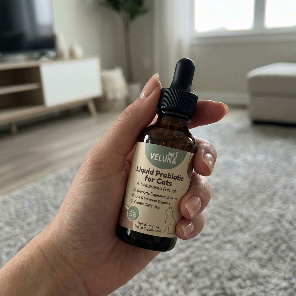 Fedezd fel a hosszan tartó komfortérzetet a Veluna Folyékony Fejlett Probiotikum Macskáknak segítségével – egy mindennapi megoldás, amelyet azért fejlesztettek ki, hogy támogassa a macskád egészségét a túlzott nyalogatás, az érzékeny bőr és az irritált, szőrtelen területek ellen.
