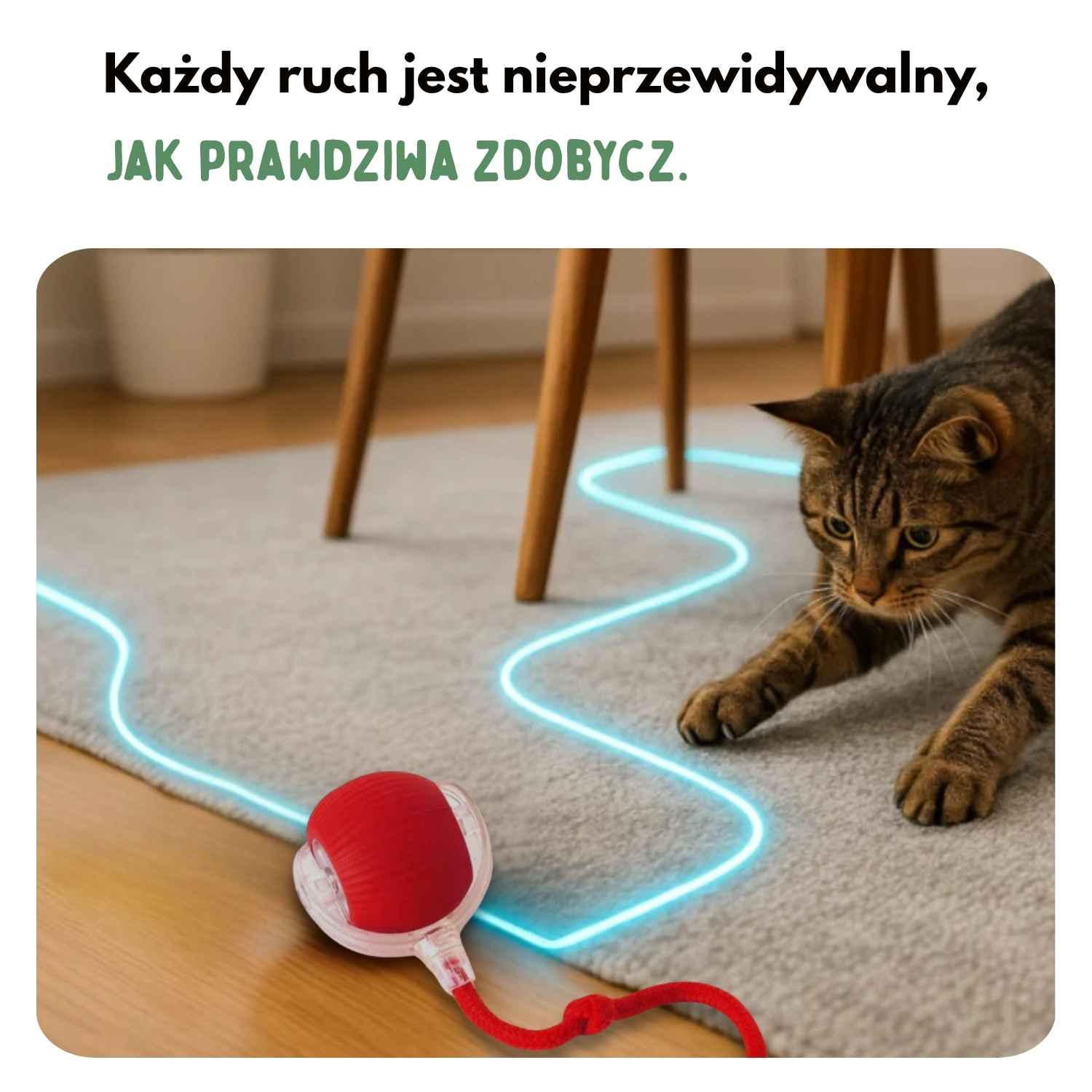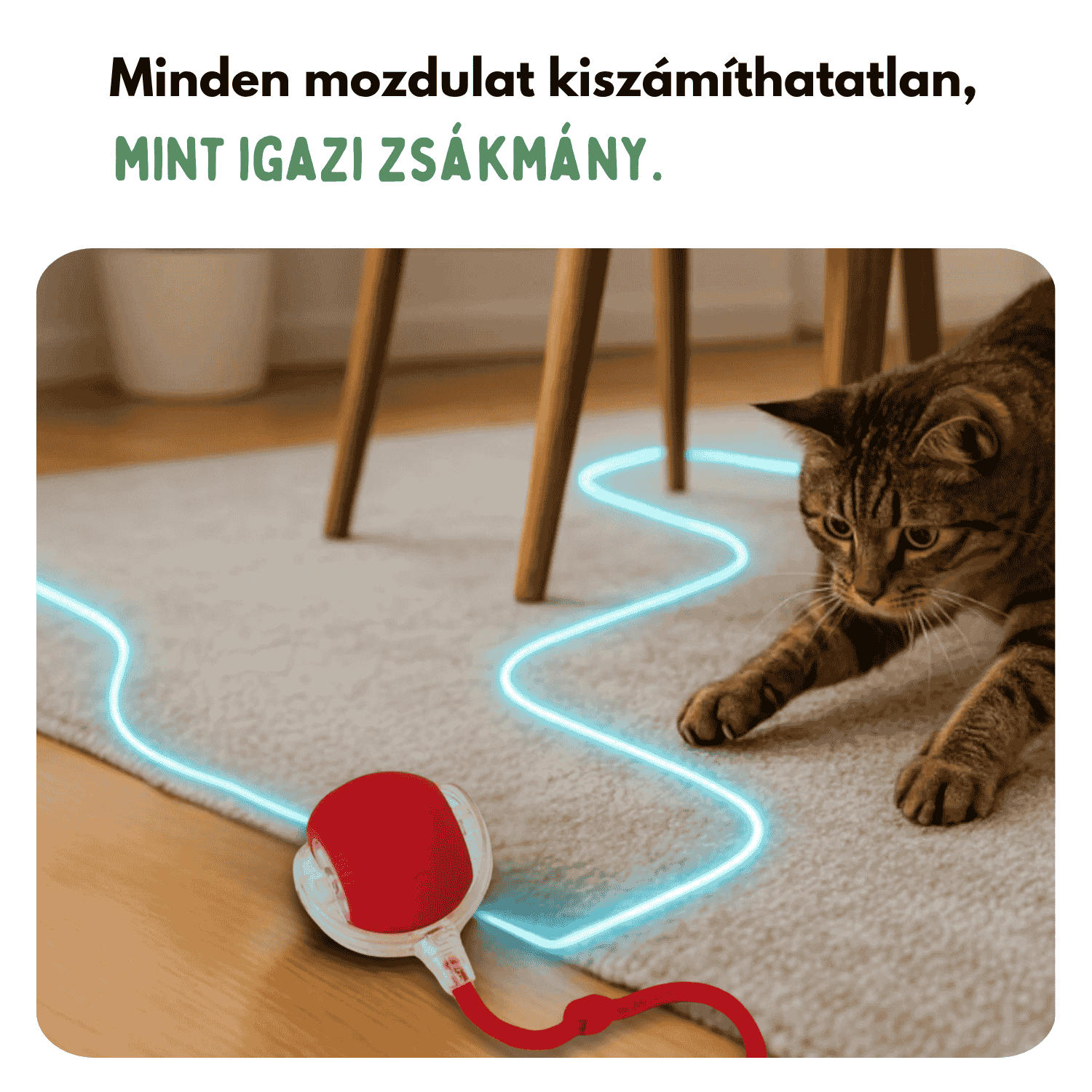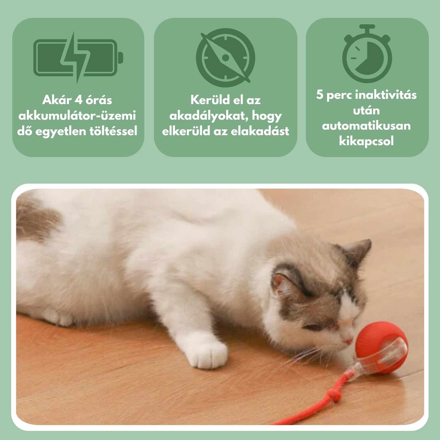 Nem, a labda 3 különböző móddal (gyors, lassú, interaktív) folyamatosan leköti a macskád figyelmét.